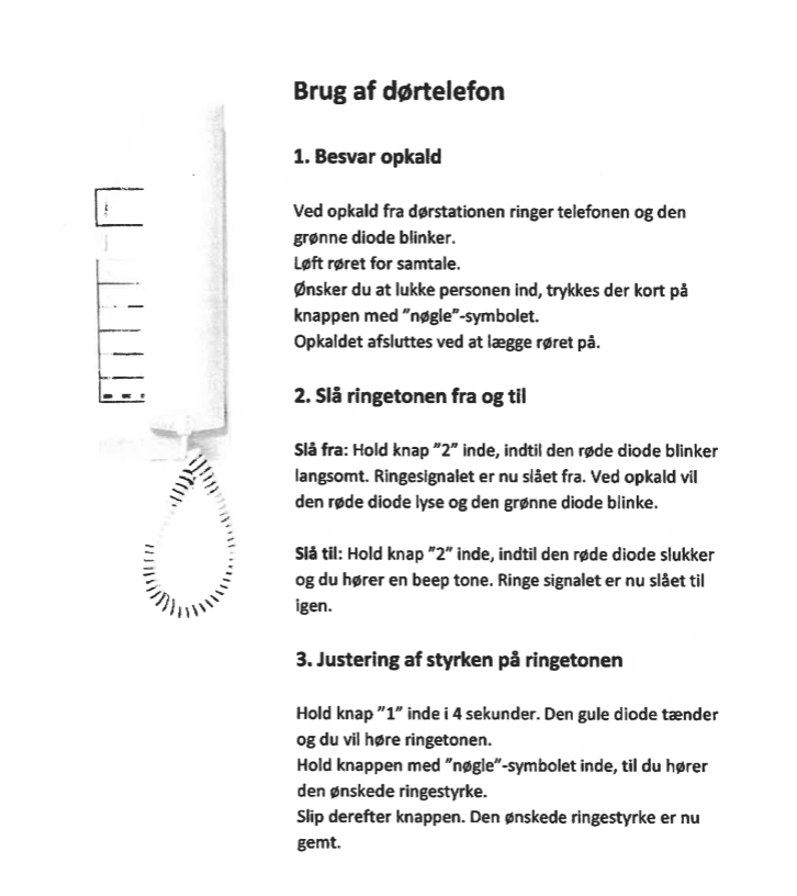 Vores dørtelefoner kan åbne vores opgangsdøre. Du kan justere lydniveauet på dørtelefonen med guiden her på siden. Portene ved Enghavevej nr. 92 og og nr. 142 kan kun åbnes med din nøglechip.